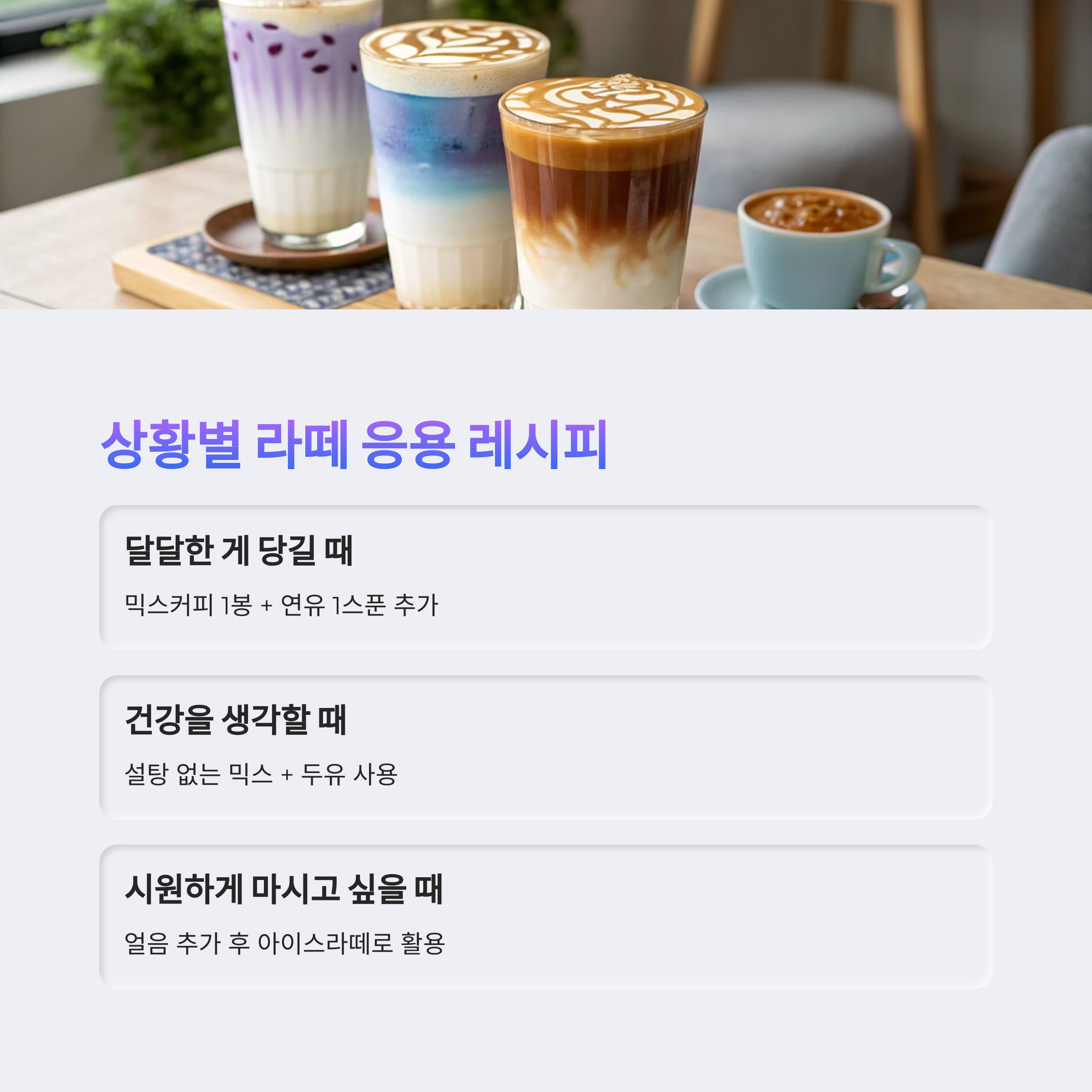 | 달달한 게 당길 때 | 믹스커피 1봉 + 연유 1스푼 추가 |