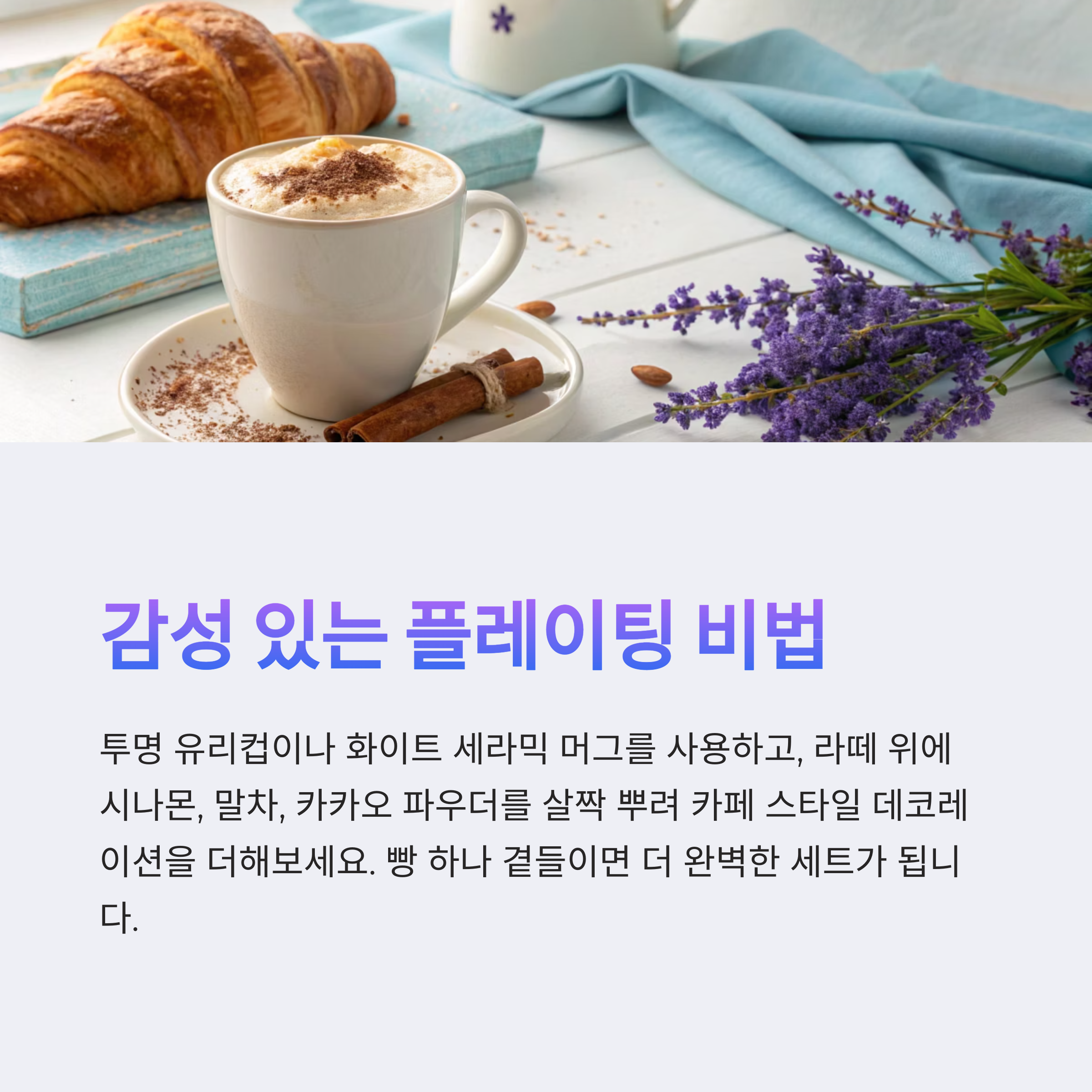 "집에서 만든 라떼지만, 분위기는 이미 카페 한켠입니다."