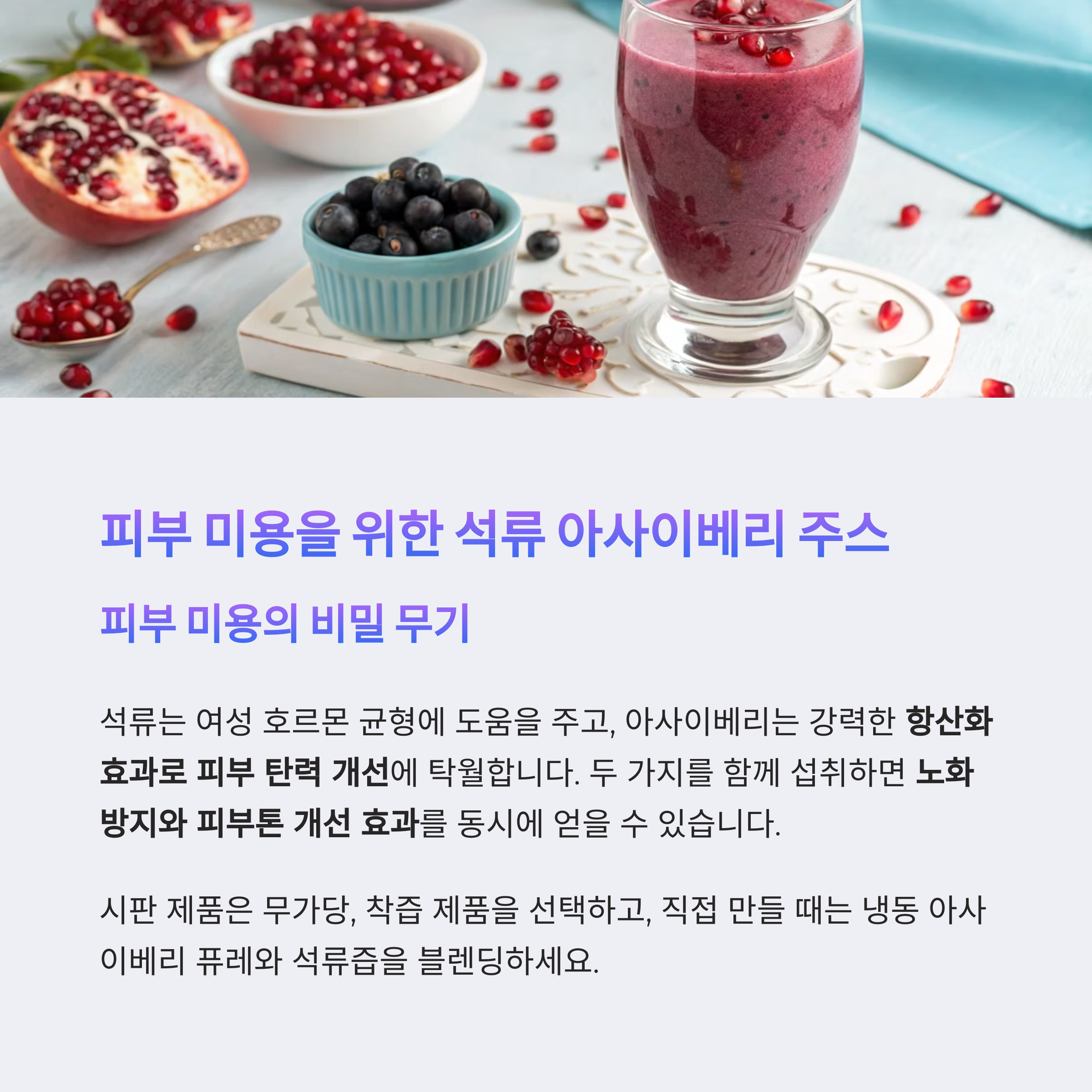 석류는 여성 호르몬 균형에 도움을 주고, 아사이베리는