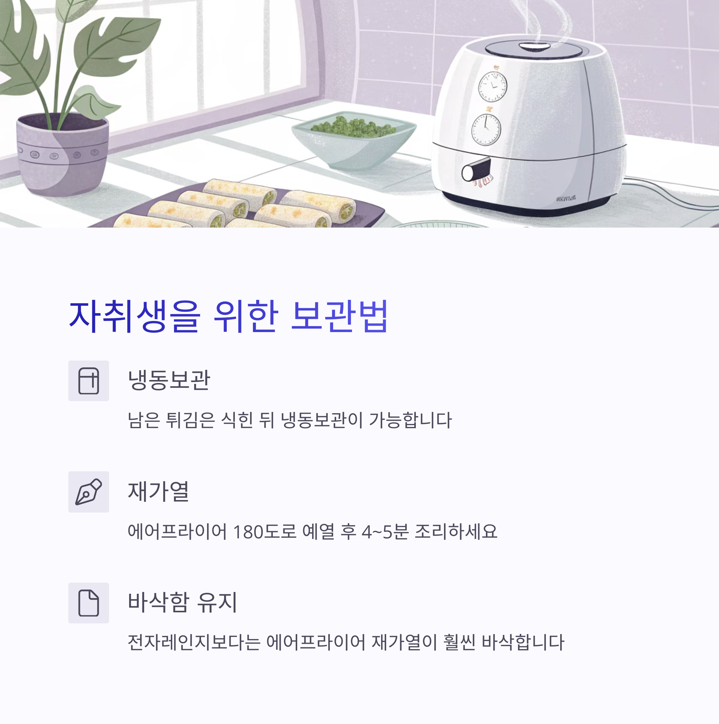 중요: 전자레인지보다는 에어프라이어 재가열이 훨씬 바삭합니다