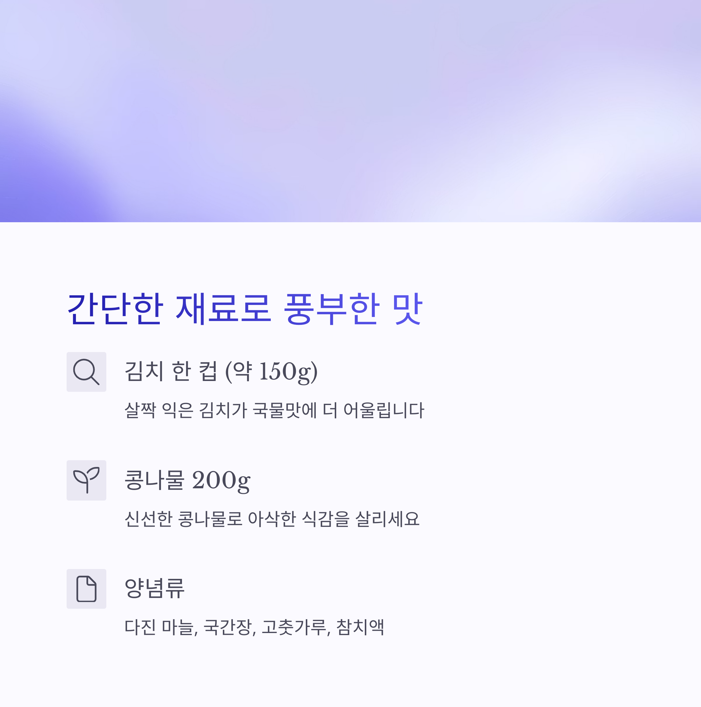 이 글에서는 김치콩나물국을 실패 없이 맛있게 끓이는 방법과