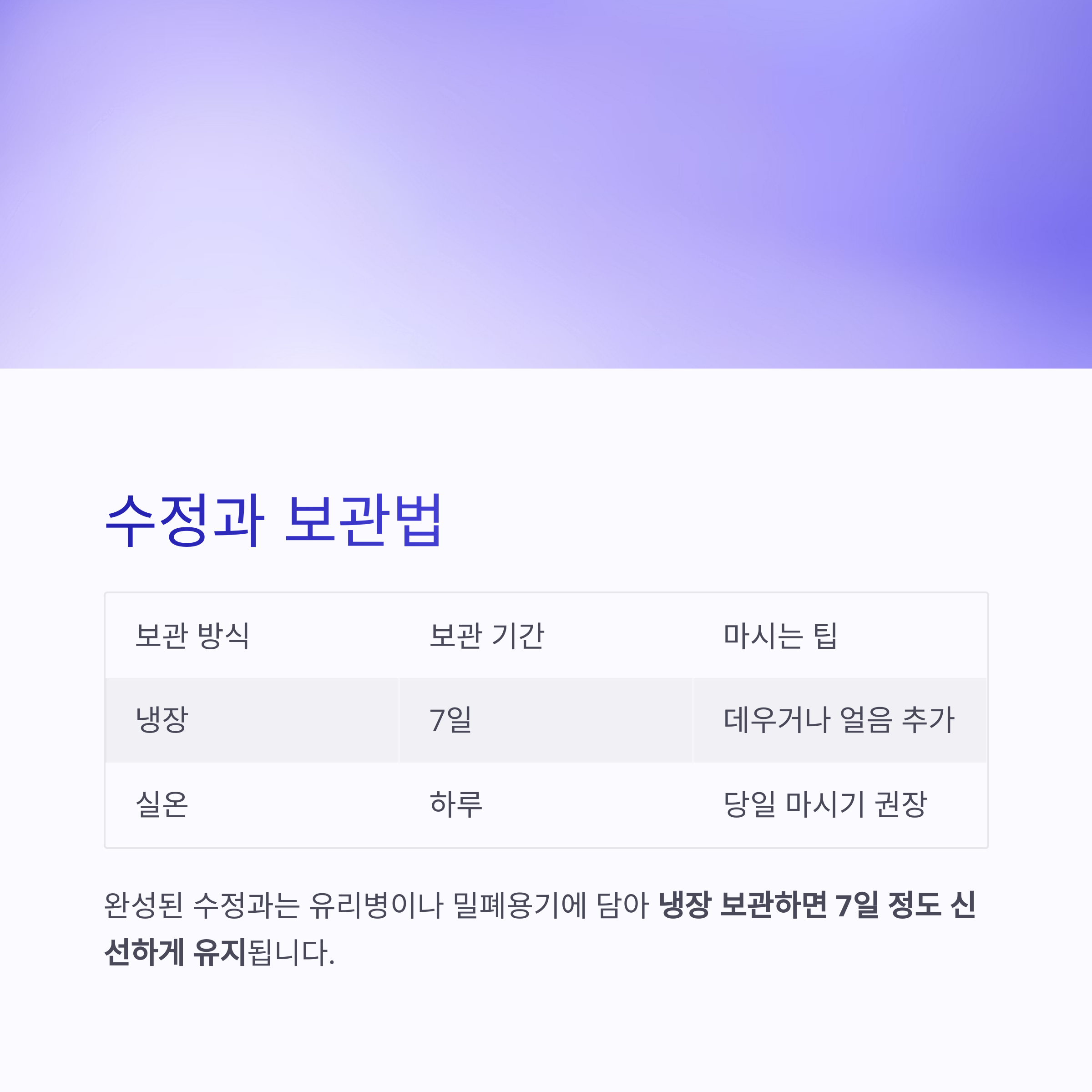 | 냉장 | 7일 | 데우거나 얼음 추가 |