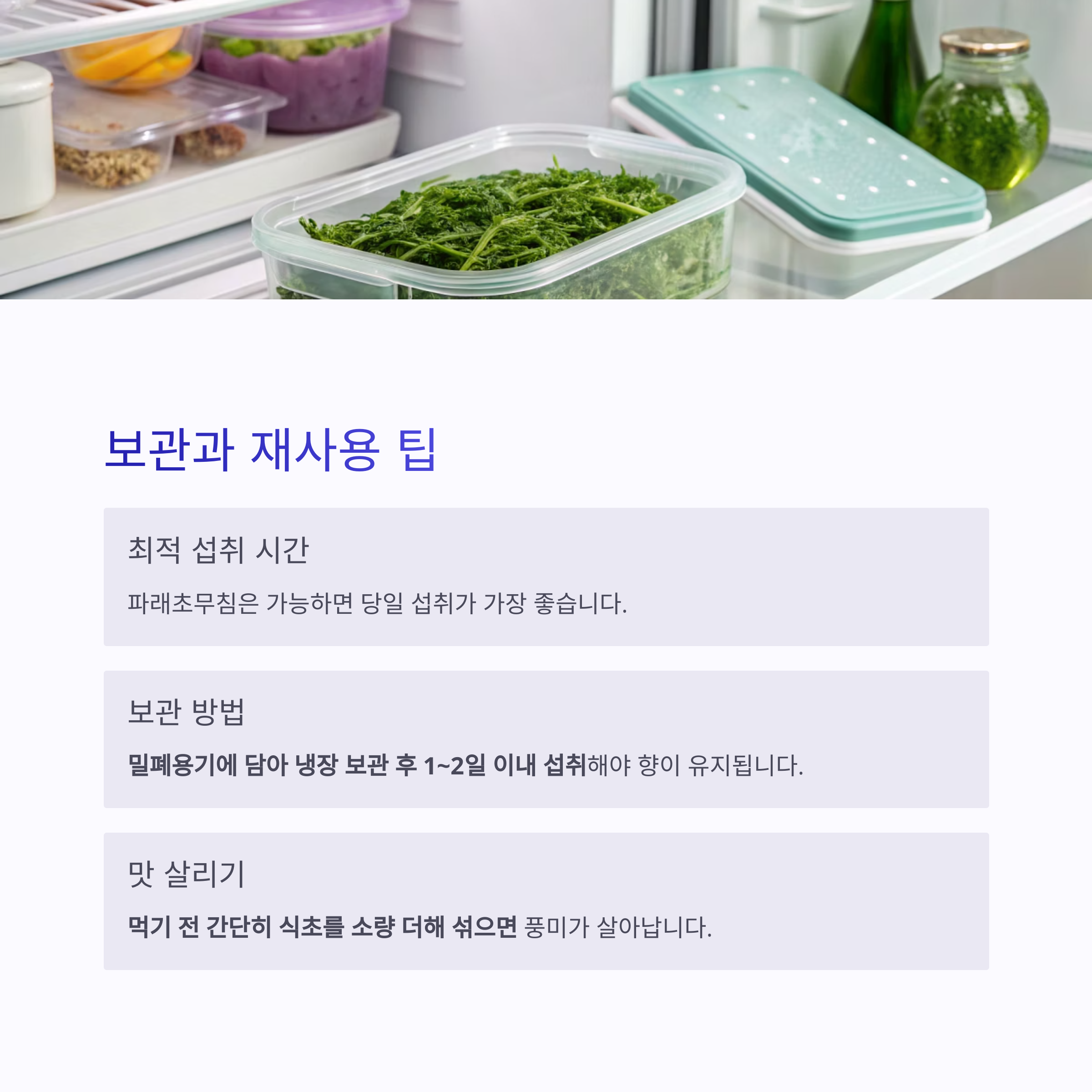 파래초무침은 가능하면 당일 섭취가 가장 좋습니다