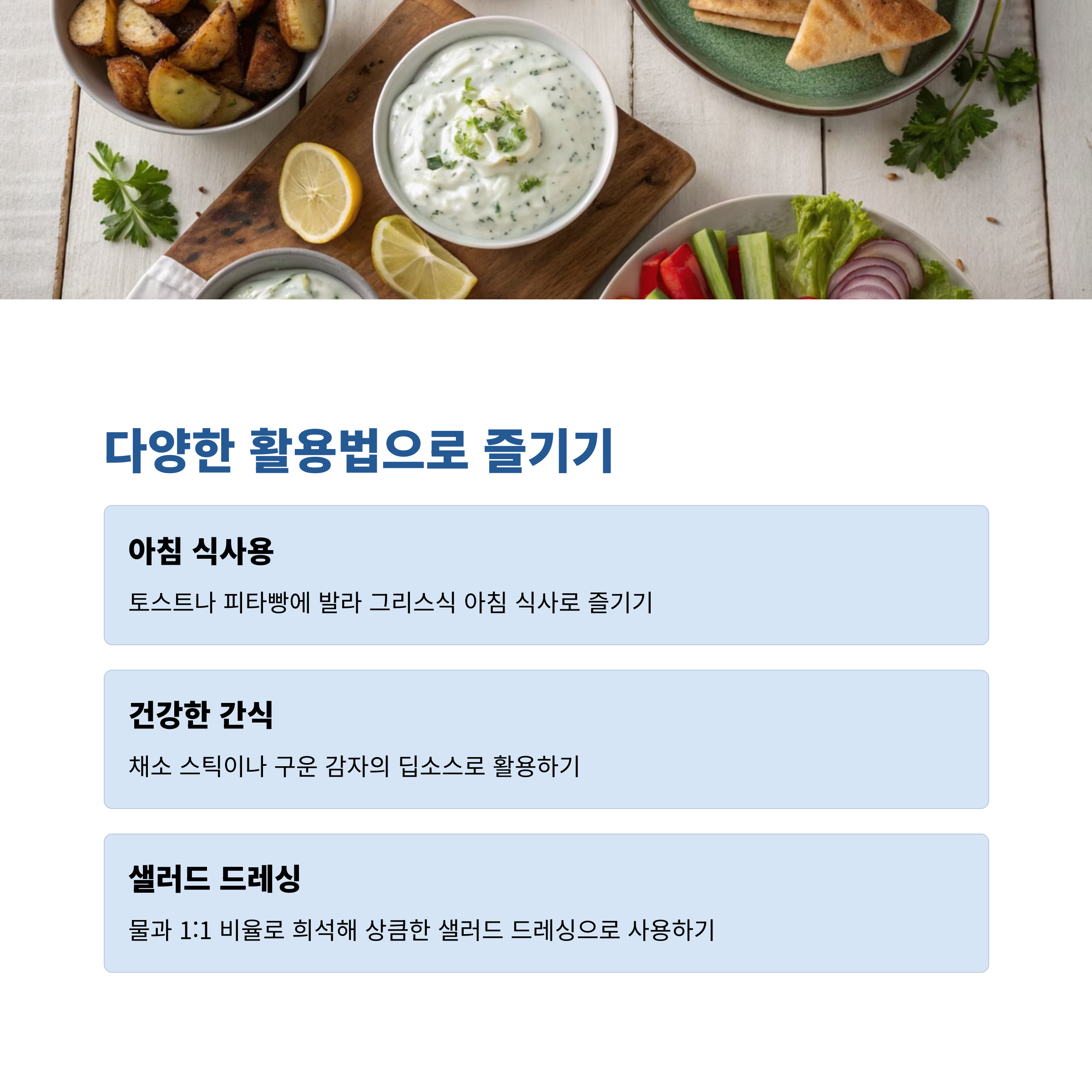 샐러드 드레싱, 피타브레드 딥, 채소스틱과도 잘 어울려요.